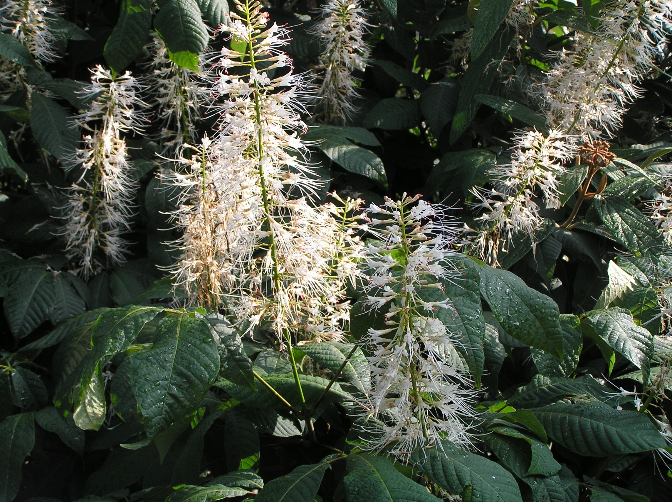 Die Strauchkastanie, Aesculus parviflora, blüht sicher ab einem Alter von 7-10 Jahren.