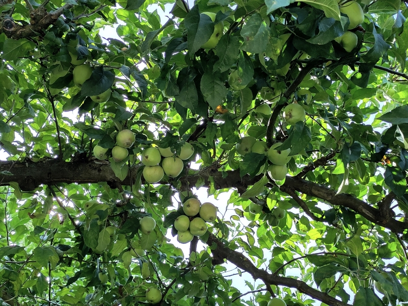 Es handelt sich dabei um einen Apfelbusch. Er besitzt ca. 60 cm Stamm und eine ungefähr 100 cm große, mehrtriebige Krone.