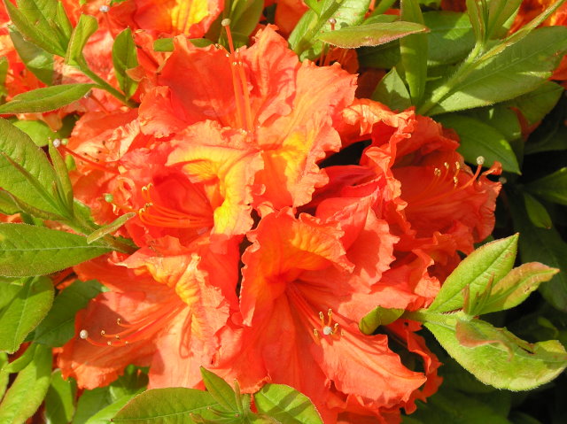 Azalea Knap Hill Hybride orange blühend - Großblumige Azalee orange blühend