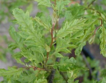 Das Blatt dieser Rotbuchensorte ist sehr schmal und tief eingeschnitten, die Herbstfärbung ist gelb.