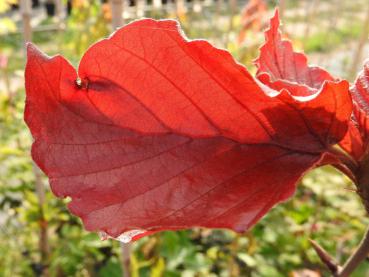 Carpinus betulus Purpurea hat einen roten Austrieb und entwickelt sich zu einem Baum mit 8 bis 12 m Endhöhe.