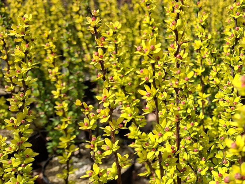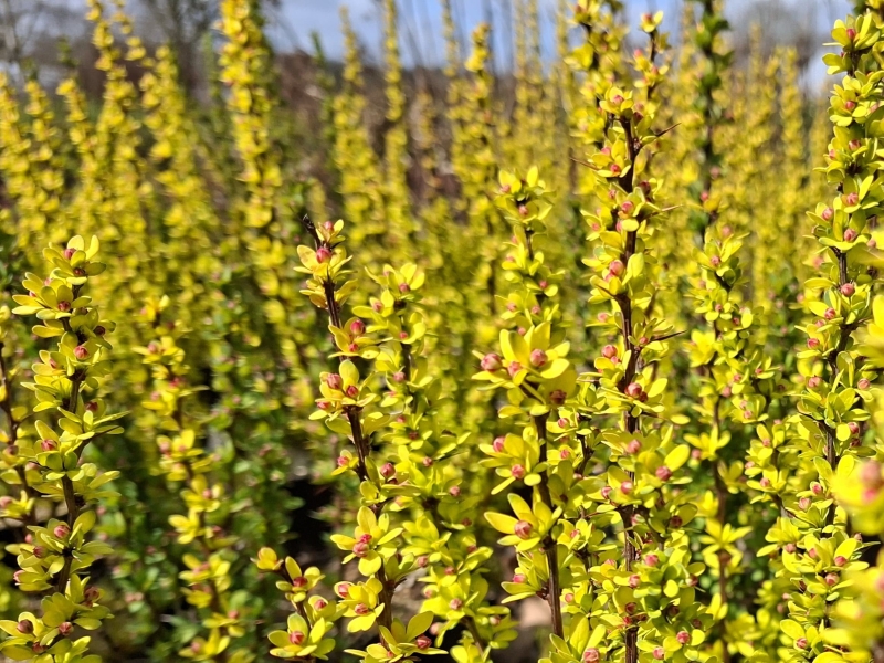 Berberis thunbergii Powwow bevorzugt sonnige Standorte. An den Boden werden keine besonderen Ansprüche gestellt, sogar gelegentliche Trockenheit wird gut überstanden. Diese schlanke Heckenberberitze ist für schmale Hecken, zur Einzelstellung oder auch für die Kübelhaltung bestens geeignet. Wie die anderen Berberis thunbergii-Sorten, treibt auch die Buntlaub-Berberitze Powwow nach einem Schnitt sehr gut wieder aus. Weitere attraktive Berberitzen in unserem Sortiment sind zum Beispiel Goldberberitze Maria, Hookers Berberitze oder auch Berberitze Mystery Fire.