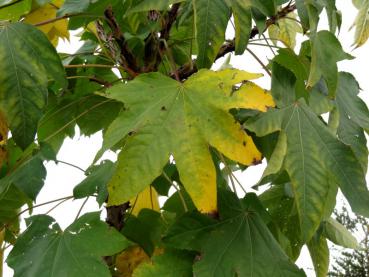 nein, der Kraftwurz, Kalopanax pictus, fühlt sich draußen wesentlich wohler.