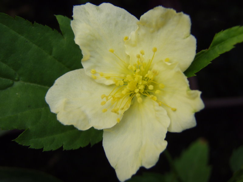 Wir haben einen Strauch, der aussieht wie eine Kerria, hat große einfache Blüten und 3-4 schwarze Beeren, die ganz dicht nebeneinander wachsen. Welcher Strauch ist das?