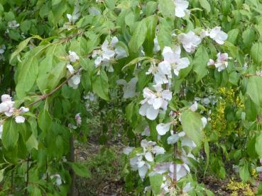 neben dem hängend wachsenden Zierapfel Red Jade würde noch der säulenartig wachsende Adirondack in Frage kommen. Etwas kleiner bleibt die Zierapfel-Sorte Tina.
