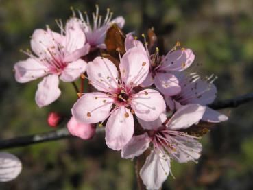 Aber ein regelmäßiger Schnitt direkt nach der Blüte (zur Not geht's auch jetzt noch) erhöht generell die Blühfreudigkeit der Blutpflaume (Prunus cerasifera Nigra), da sie besonders an den Kurztrieben des Vorjahres blüht. Diese bilden sich nach dem Zurückschneiden verstärkt.