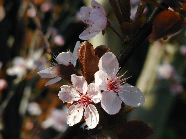 ich finde die Blutpflaume "Nigra" so schön, insbesondere das rote Laub und die frühe rosa Blüte. Gerne würde ich sie in einer Gruppe mit vorhandenem Flieder (unveredelt) und Jasmin pflanzen. Dabei würde die Blutpflaume vor dem Flieder stehen und der Jasmin seitlich davon. Der Abstand könnte jeweils ca. 1,50 m betragen. Hinter dem Flieder ist Süden, aber große Waldbäume werfen Schatten. Wäre das ein sinnvolles Arrangement?