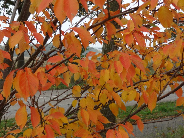 im unserem Garten (Mietshaus) steht eine recht große japanische Zierkirsche mit einem ca. 6 strahligen Stamm. Ich glaube, sie wurde in den 70ern gepflanzt. Die Stämme sind zum Teil schon etwas morsch, bzw. ausgehöhlt. Normalerweise wird das Laub im Herbst dunkelrot, bevor es fällt. Dieses Jahr ist die typische Rottönung gar nicht aufgetreten, die Blätter waren alle zwischen gelb und rostfarben.