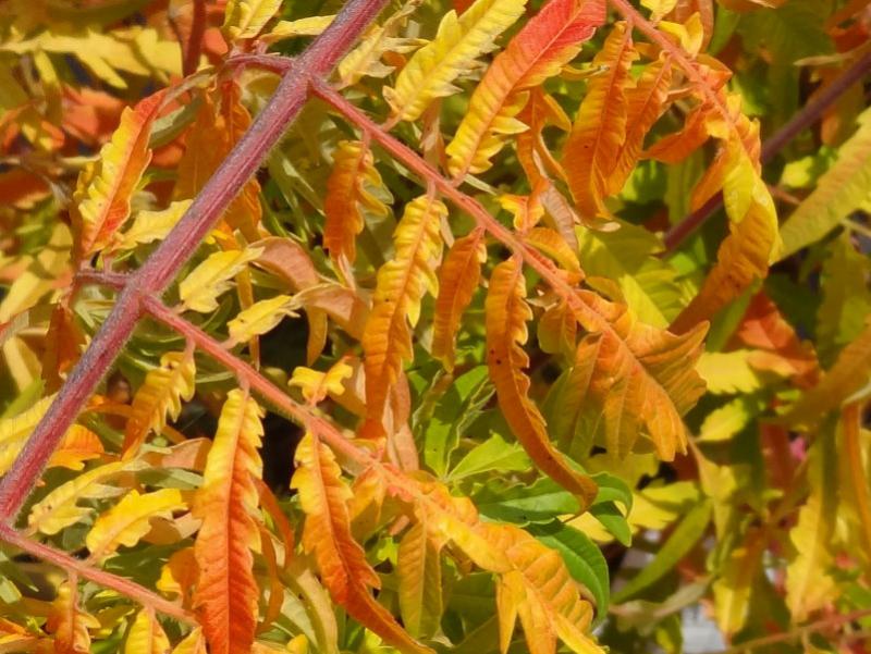 der Essigbaum Tiger Eyes ist laubabwerfend - und jetzt ist auch die richtige Zeit dafür.