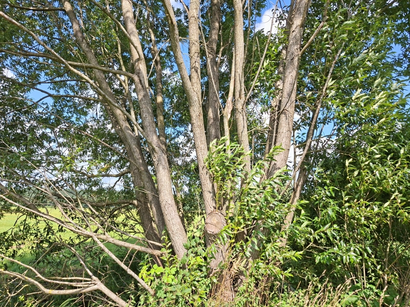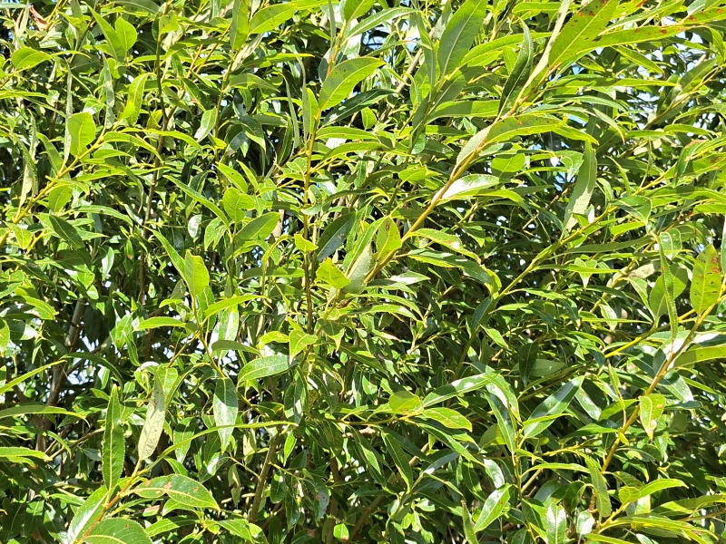 Wir dachten nun an die Lorbeerweide, Salix caprea oder Salix viminalis, die uns mit dem frischen Grün sehr gefallen und mit 10-12 Metern Endhöhe eine gute Größe erreichen.