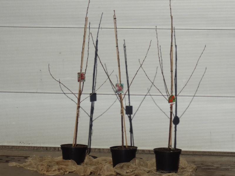 Wir haben jetzt am Ende der Frühjahrssaison allerdings nur noch starkwachsende Unterlagen. Für wurzelnackte Kirschen ist es jetzt auch langsam zu spät, aber Topfpflanzen kann man jetzt noch setzen. Wurzelnackte Pflanzen gibt es wieder ab Mitte Oktober. In der Spalierform können Sie sich ganz nach Ihrem Geschmack richten.