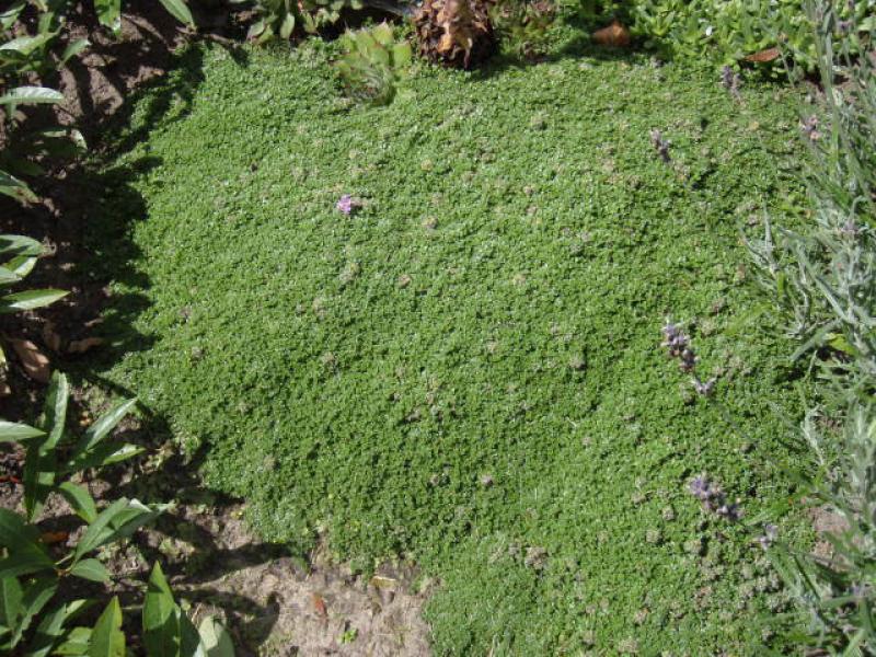 Das hängt sehr von den Bodenverhältnissen ab: Handelt es sich um einen sandigen, leichten Boden in einem sonnig Bereich, ist der kriechende Thymian (Thymus serpyllum Minor) sehr gut geeignet und wird gut gedeihen. Bei eher schwerem Boden und schattiger Lage sollte man sich lieber einen anderen Bodendecker wählen.