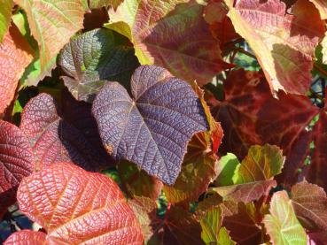 Der echte Wein benötigt sicher einen warmen, geschützten Standort - erst recht, wenn man einen vernünftigen Ertrag haben möchte. Die Scharlachrebe, Vitis coignetiae, ist aber deutlich härter im Nehmen und sollte an dem beschriebenen Standort gedeihen. Auch der wilde Wein, Parthenocissus quinquefolia, gilt grundsätzlich als windfest.